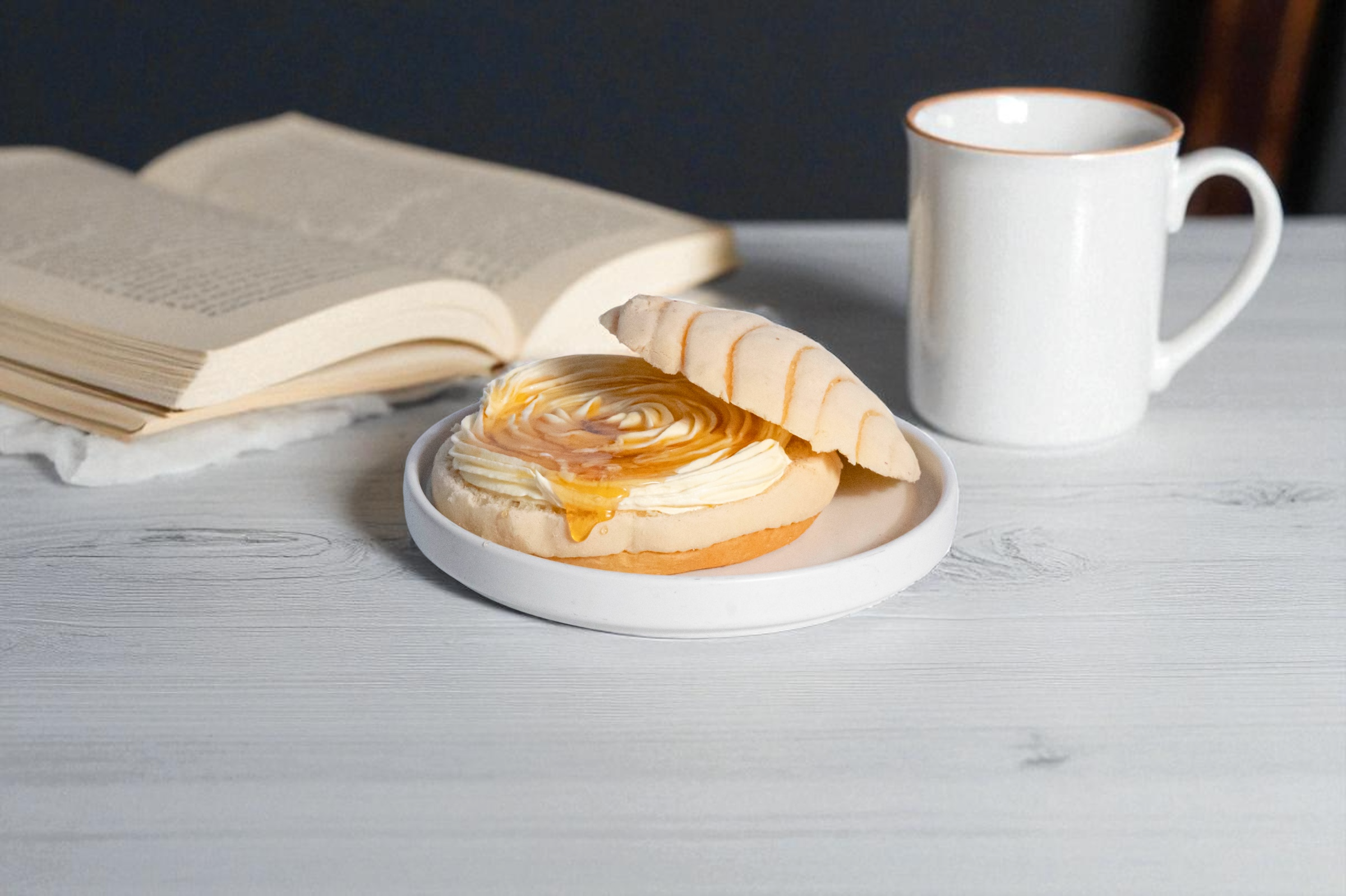 Concha rellena de nata y miel